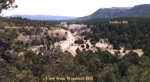 The core battlefield zone comprises Pigeon's Ranch, Sharpshooter's Ridge, Artillery Hill, and Windmill Hill, an area of approximately one square mile. It was in this area that the second component of the Battle of Glorieta Pass, also called the Battle of Pigeon's Ranch, took place on March 28, 1862.